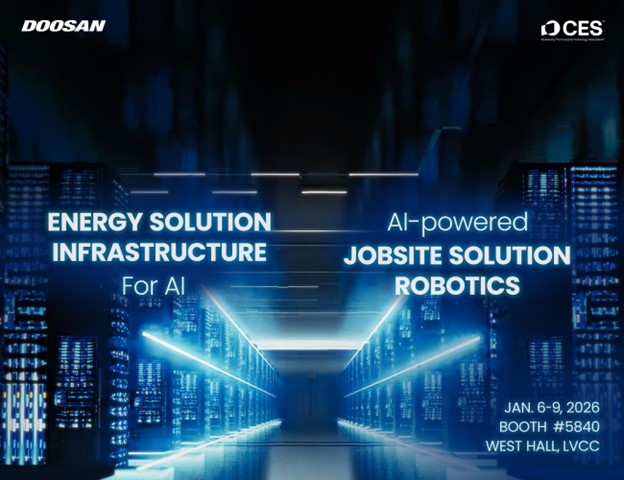 CES 2026 (West Hall, Booth 5840), where it will present a renewed portfolio of technologies advancing clean energy, jobsite automation, and intelligent machine innovation designed to meet the demands of the AI era. This year’s exhibit will showcase forward-looking solutions from Doosan’s various business units, highlighting the Group’s commitment to supporting the rapid growth of AI-driven industries - from energy solutions and electro-materials for AI data centers to AI-powered innovations that enable safer and more efficient jobsites.